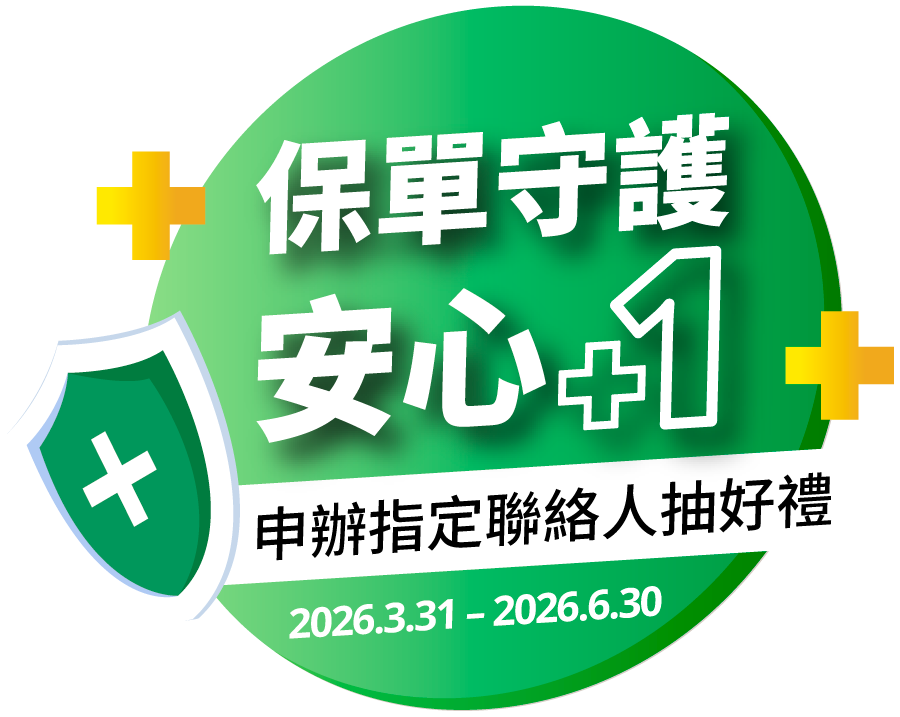- 本分公司保戶於活動期間內,申請指定聯絡人服務並於2026.7.15前成功申辦完成者,即獲得本活動抽獎機會,每筆申請服務之保單可獲得1次抽獎機會